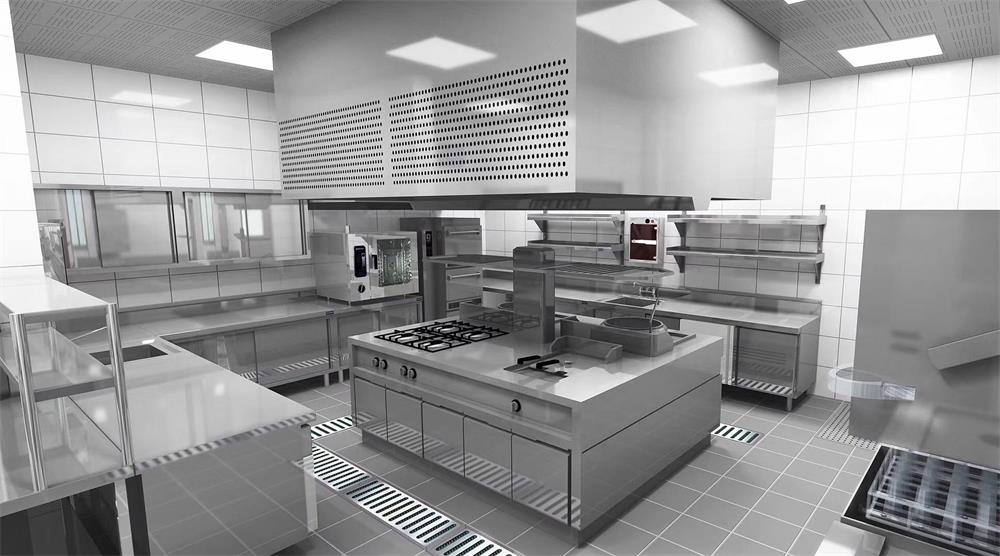 2.設備布局:遵循工作流程,將烹飪設備、備餐設備、清洗設備、儲藏設備等合理分布,形成流暢的工作動線,減少人員移動距離,提高工作效率。例如,烹飪設備與調(diào)料架相鄰,洗碗機與餐具*柜相鄰,食材儲存區(qū)靠近廚房入口便于食材補給,同時考慮設備布局有利于快速疏散。